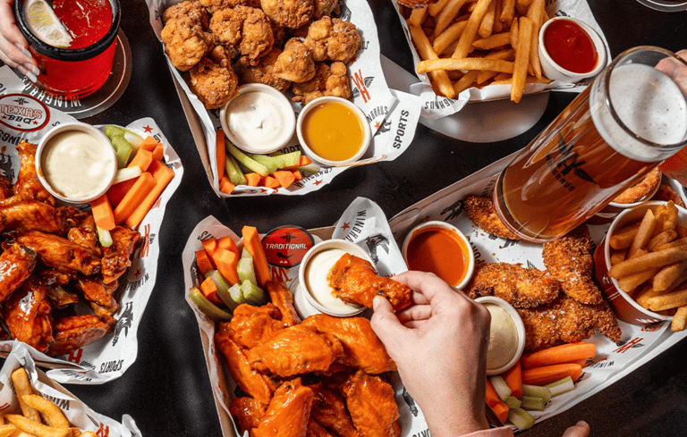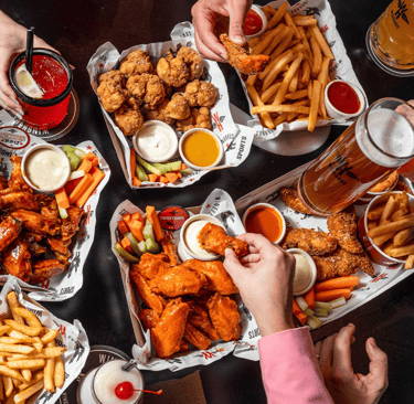 Classic wings in all flavours, onion rings and fries served continuously for the full 2 hours.